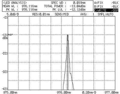 技术指标说明:1.峰值工作波长可指定;2.输出功率稳定性测试条件为25度,开机预热30分钟后。光谱图: